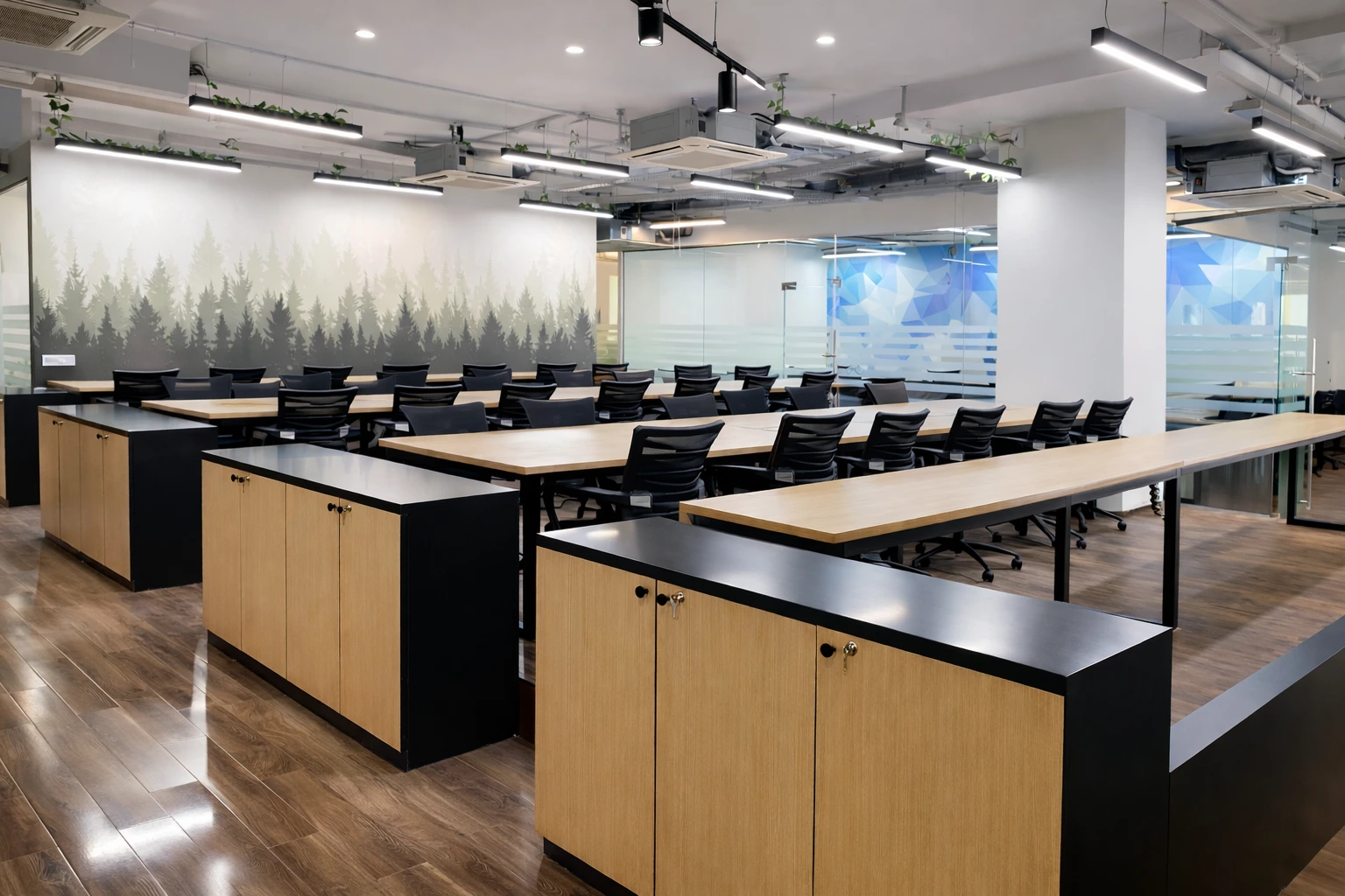 Professional spaces equipped with modern facilities for meetings, presentations, and client discussions.